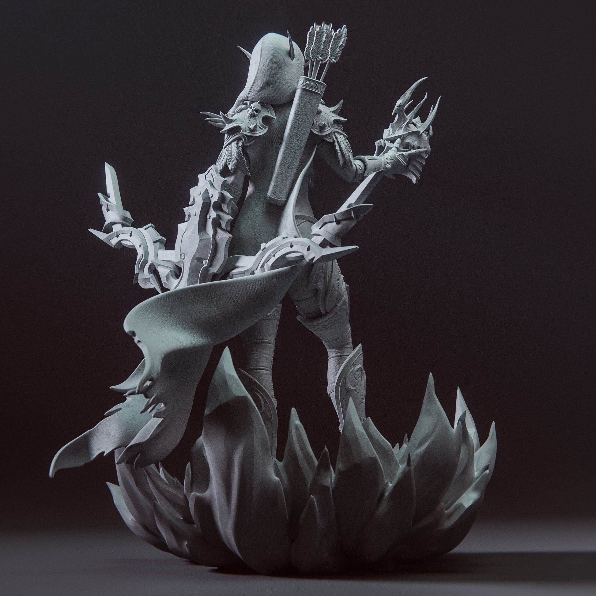 A premium resin collectable inspired by a legendary ranger from a vast high-fantasy universe. Designed for collectors and painters who appreciate ornate sculpting, dark elegance, and iconic fantasy silhouettes.