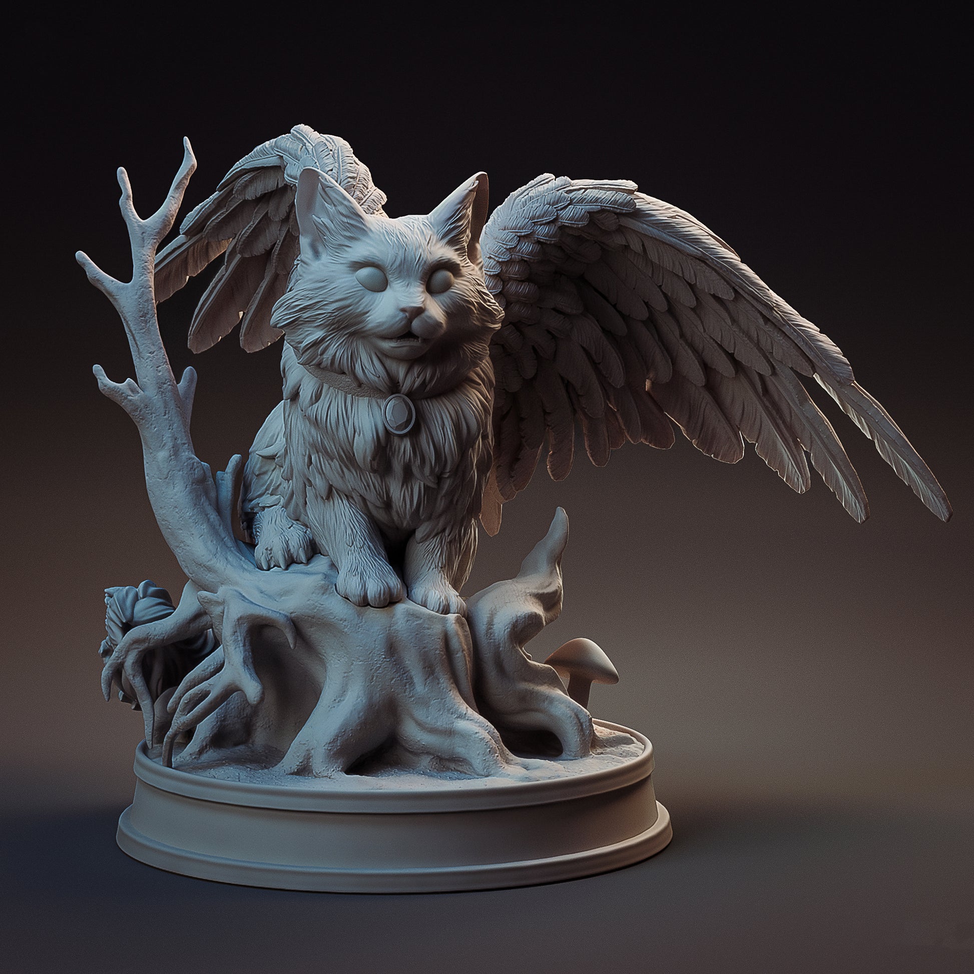 This figurine features soft fur texturing, rounded features, and subtle fey details that highlight the creature’s mystical origins. Large expressive eyes, tufted ears, and a curled tail are sculpted with crisp definition. The stable stance is resin-friendly while capturing the familiar’s gentle, alert personality. Smooth surfaces contrast with fur textures, offering varied painting opportunities.