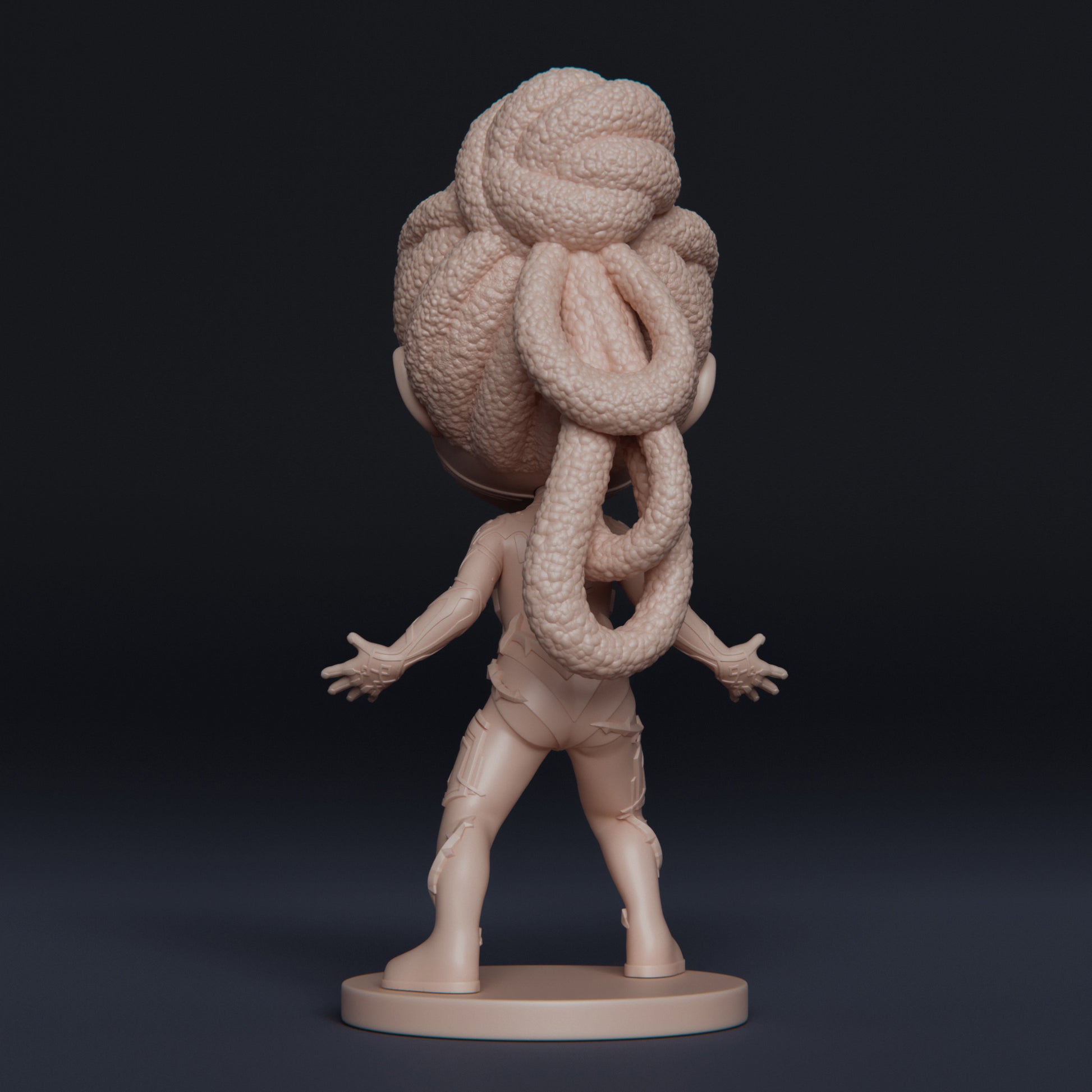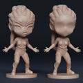 The figurine features oversized chibi proportions, detailed weaponry, stylised clothing, and expressive facial features. Smooth resin surfaces ensure both display-ready presentation and custom paint potential, capturing the character’s heroic energy in a small-scale design.