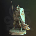 Crafted from premium resin, the miniature features detailed armor, a commanding stance, and sculpted symbols of devotion that convey valor, discipline, and holy purpose. Whether used as a player character, divine NPC warrior, or collectible centerpiece, the Sunward Champion adds narrative depth, visual gravitas, and cinematic flair to any tabletop adventure.