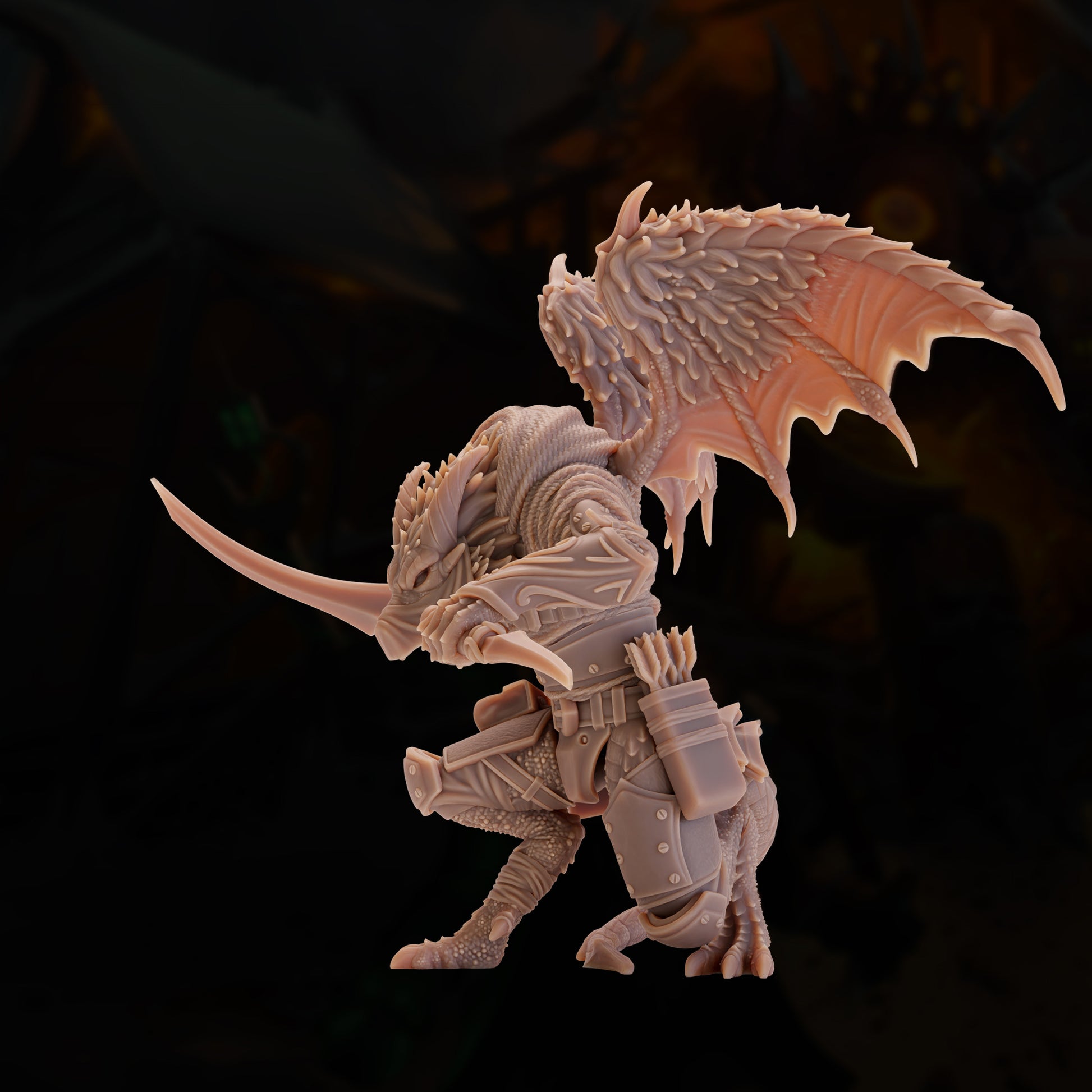 Sculpted in premium resin, the miniature emphasizes low center of gravity, compact movement, and controlled tension through bent limbs and angled blades. The medium leather armor balances mobility and protection, reinforcing the rogue’s role as a silent killer rather than a frontline fighter. Whether representing a shadowy assassin or elite scout, this Dragonborn Rogue delivers subtle menace and tactical clarity to any tabletop or display collection.