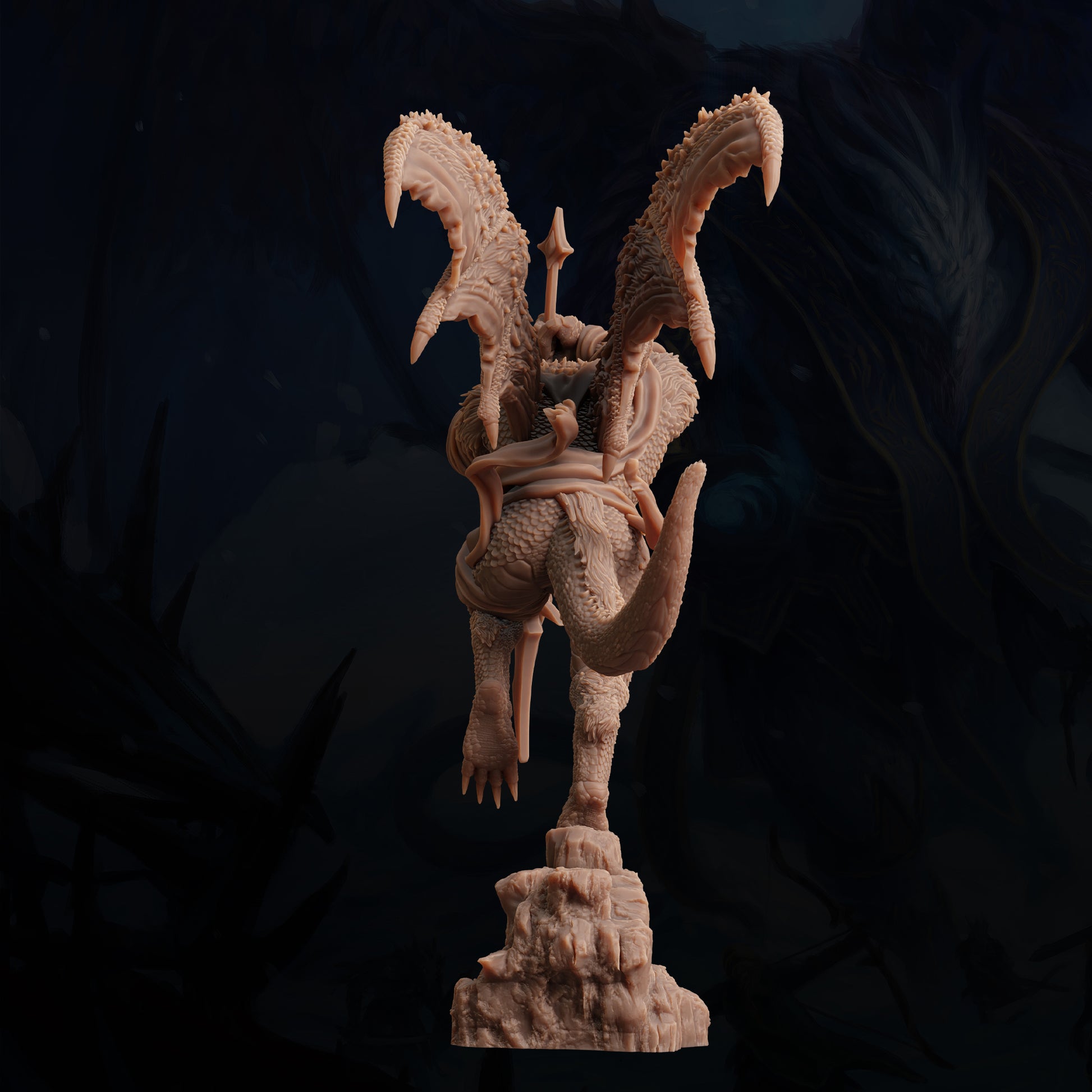 Cast in premium resin, the miniature highlights a wide, grounded stance, elevated position, and downward-focused posture that conveys power and inevitability. The raised spear and commanding pose suggest control rather than chaos, making this model perfect for representing victorious warriors, savage champions, or intimidating enemies. Whether displayed as a barbarian warlord or relentless fighter, this Dragonborn Warrior radiates menace and authority.