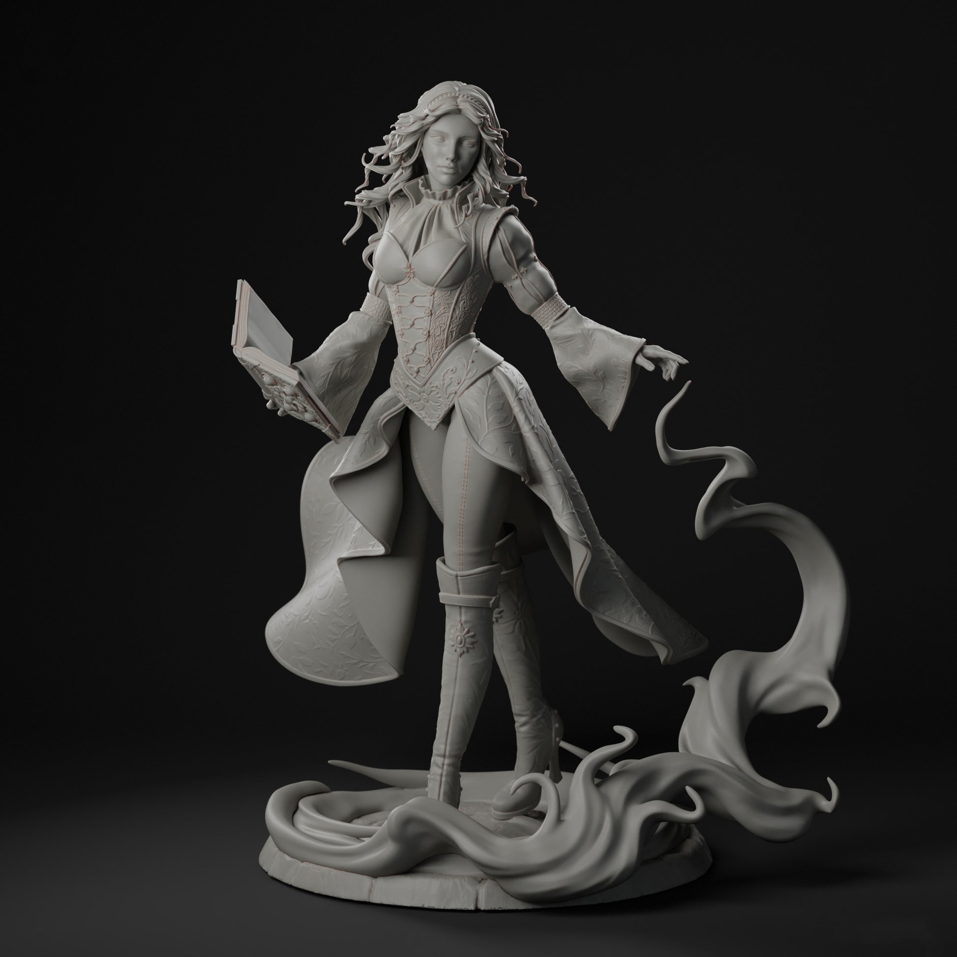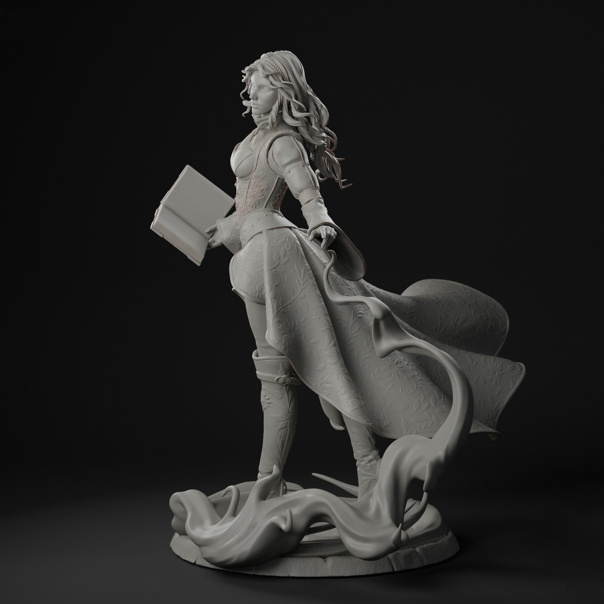 Cast in solid resin to preserve fine fabric textures, intricate accessories, and clean sculpting. The themed base provides stability and complements the warm, magical aesthetic. Available in Black & White and Premium Hand-Painted versions.