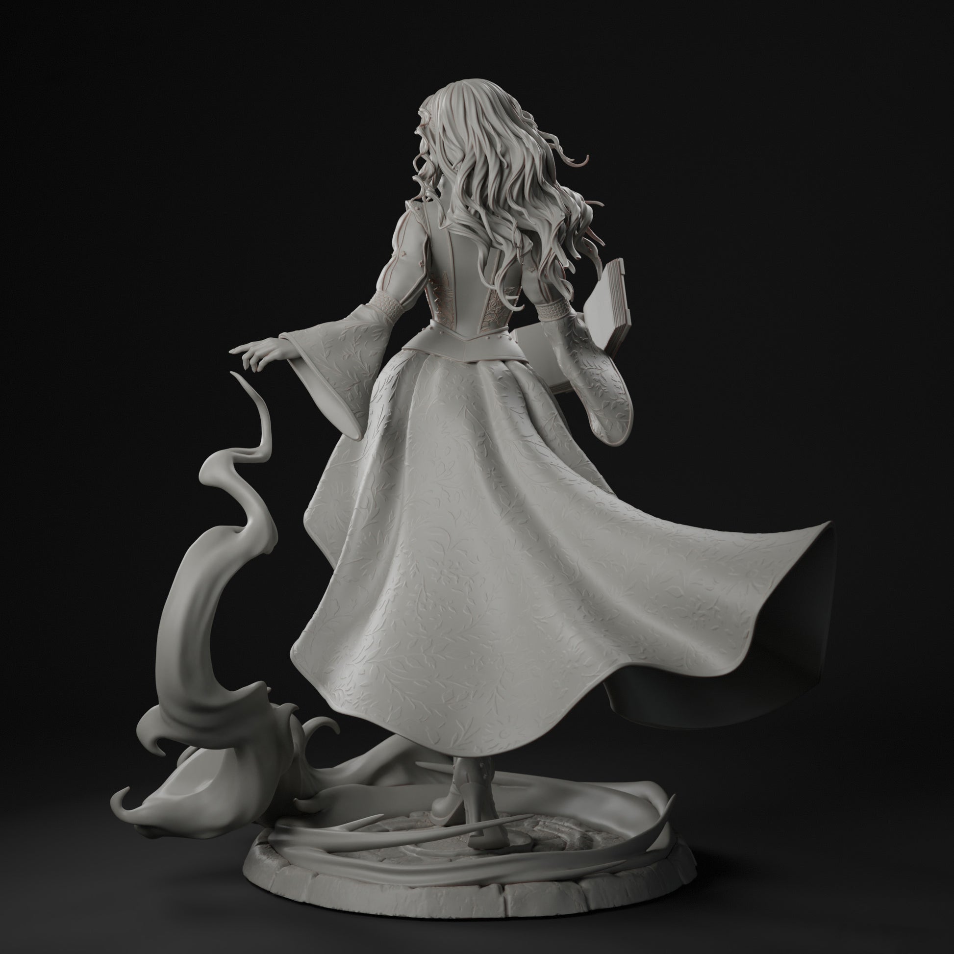 A premium resin collectable inspired by a warm-hearted, flame-touched sorceress from a beloved dark fantasy universe. Perfect for collectors and hobby painters who appreciate elegant clothing, magical motifs, and refined character sculpting.