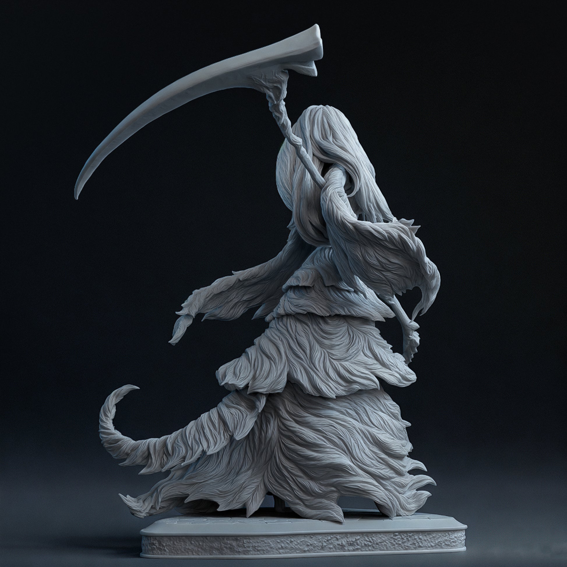 A premium resin collectable inspired by a mysterious, frost-touched guardian from a renowned dark fantasy universe. Perfect for collectors and hobby painters who appreciate serene yet haunting character designs and finely sculpted textures.