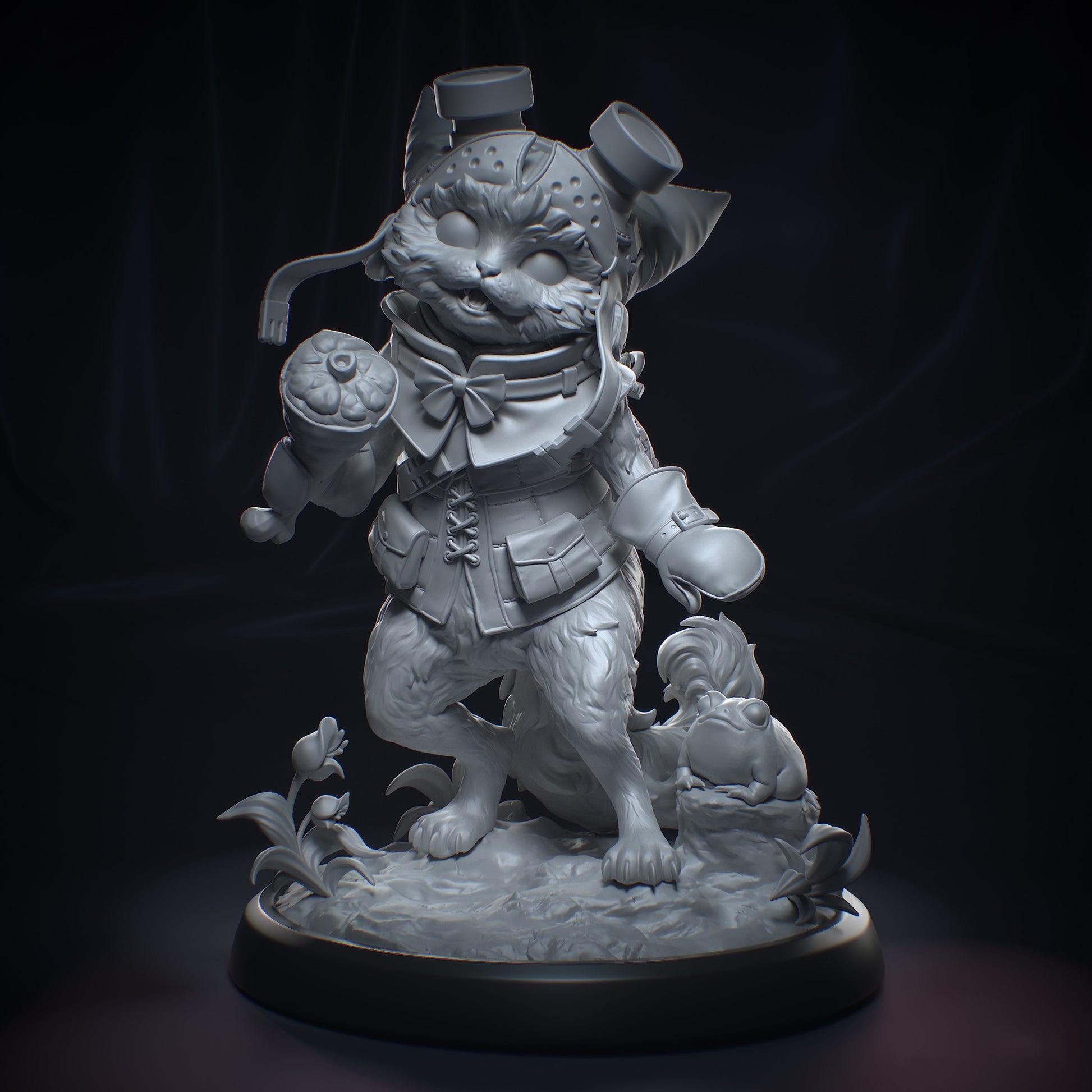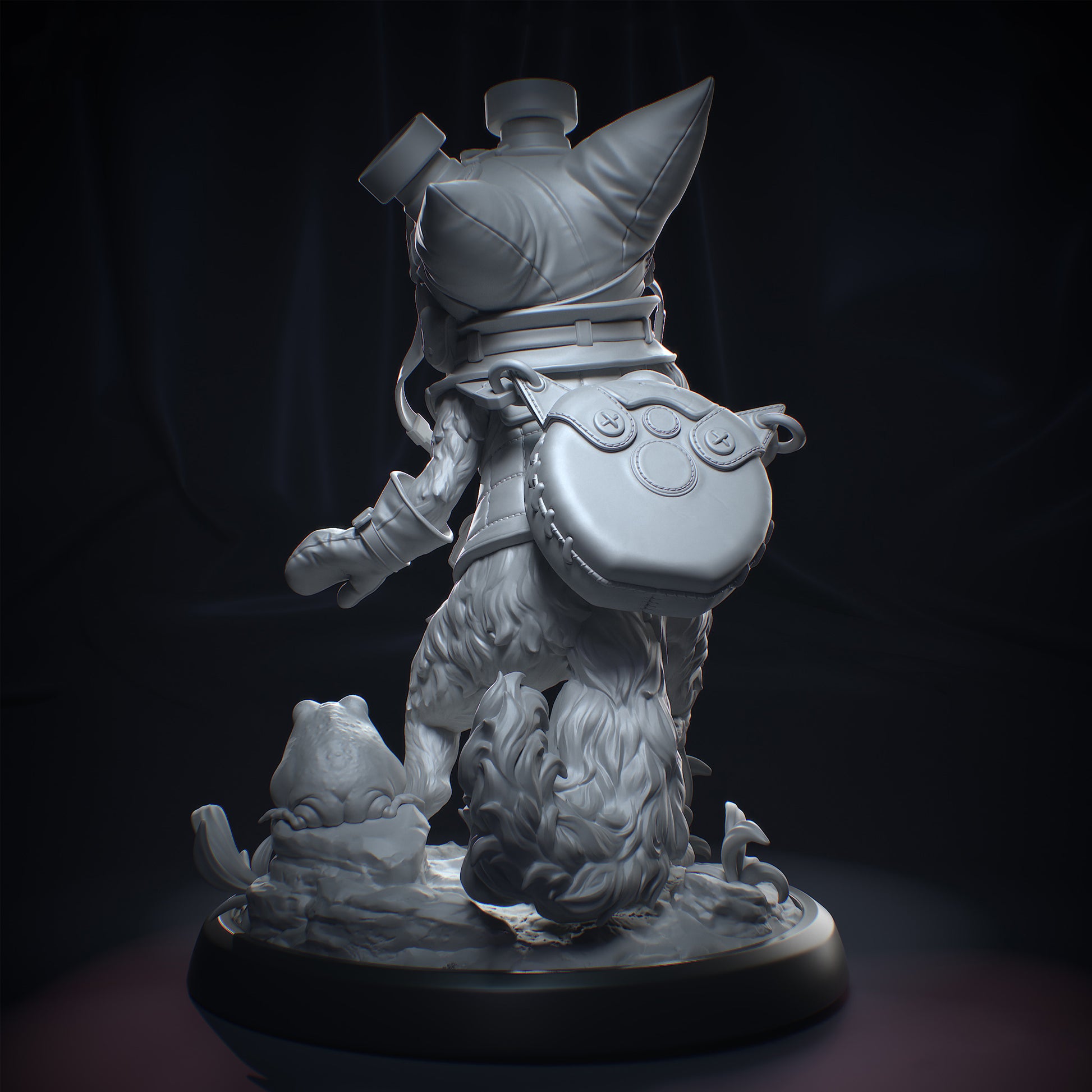 A premium resin collectable inspired by an adorable yet battle-ready feline companion from a beloved hunting-action universe. Ideal for collectors who love charming creature designs and hobby painters seeking expressive, finely detailed sculpts.