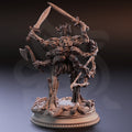 Crafted from premium resin, the miniature features gnarled wood textures, demonic accents at its core, and a dynamic, multi-limbed battle pose that conveys raw strength, sinister control, and unstoppable force. Whether used as a corrupted forest guardian, demon-possessed NPC, or collectible centerpiece, the Hellroot Colossus adds narrative tension, visual intimidation, and supernatural flair to any tabletop adventure.