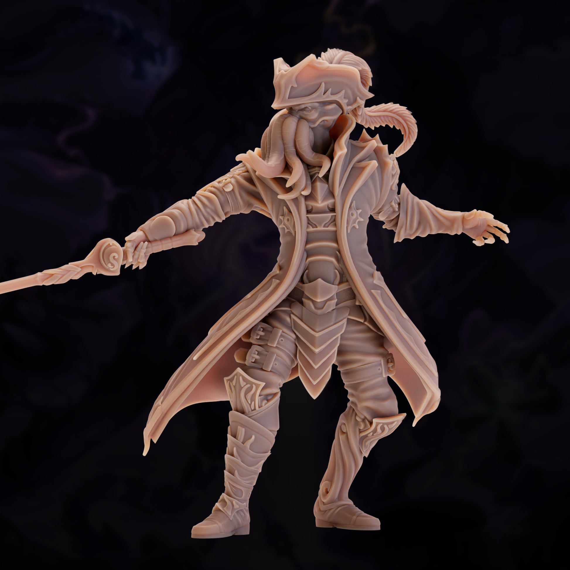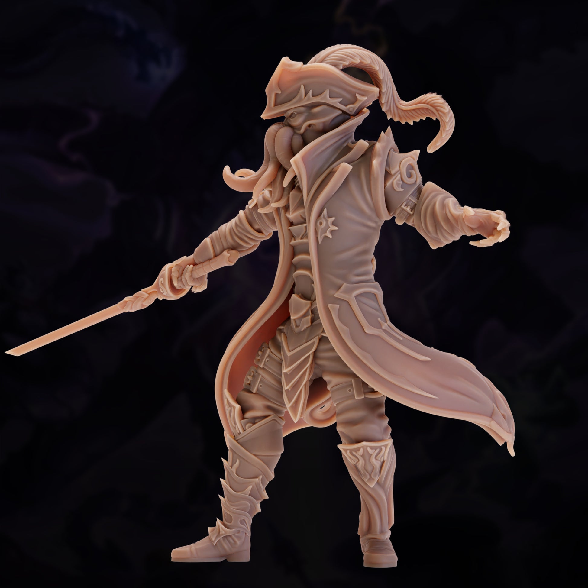 Illithid Pirate Captain Miniature – Fencing Duelist | D&D TTRPG Model