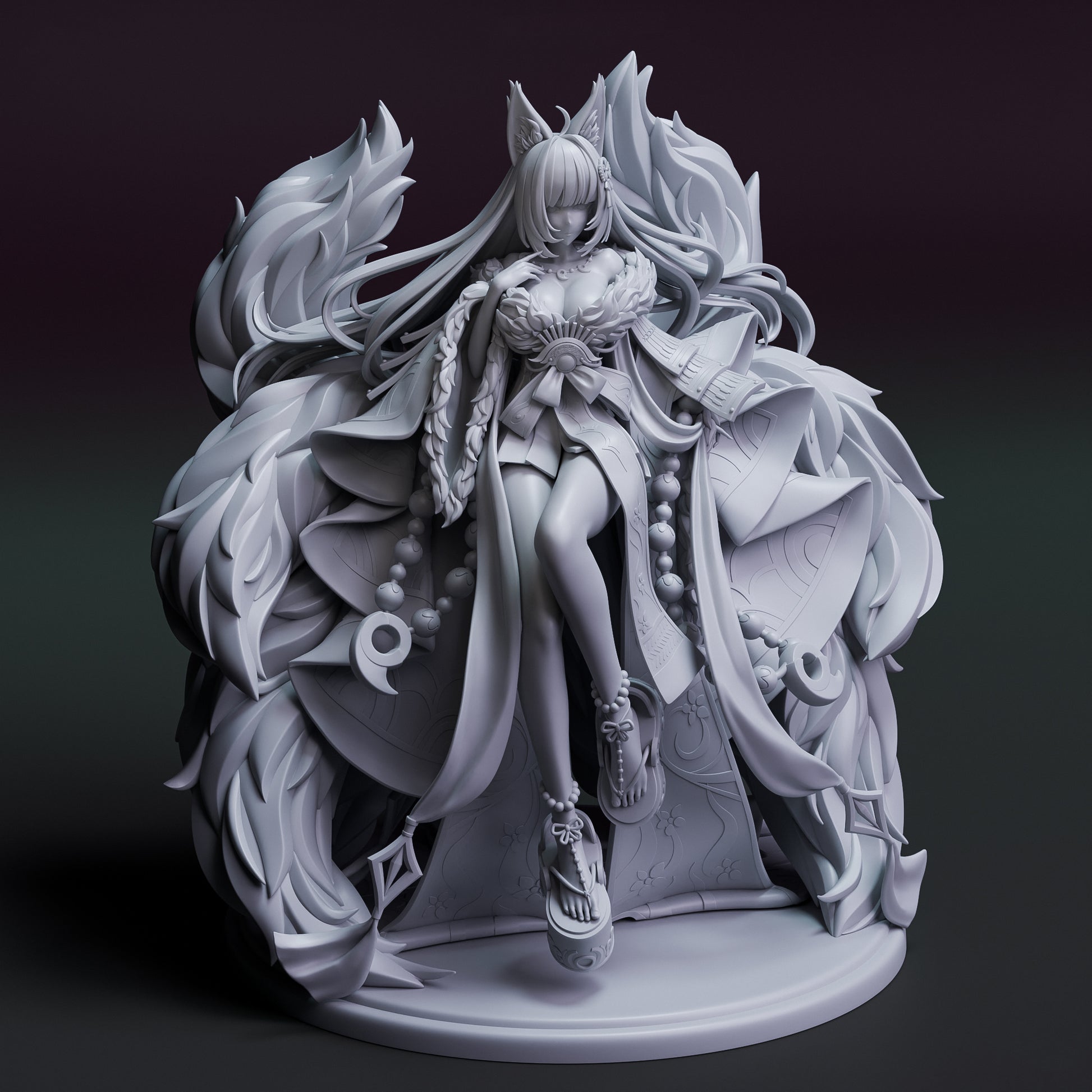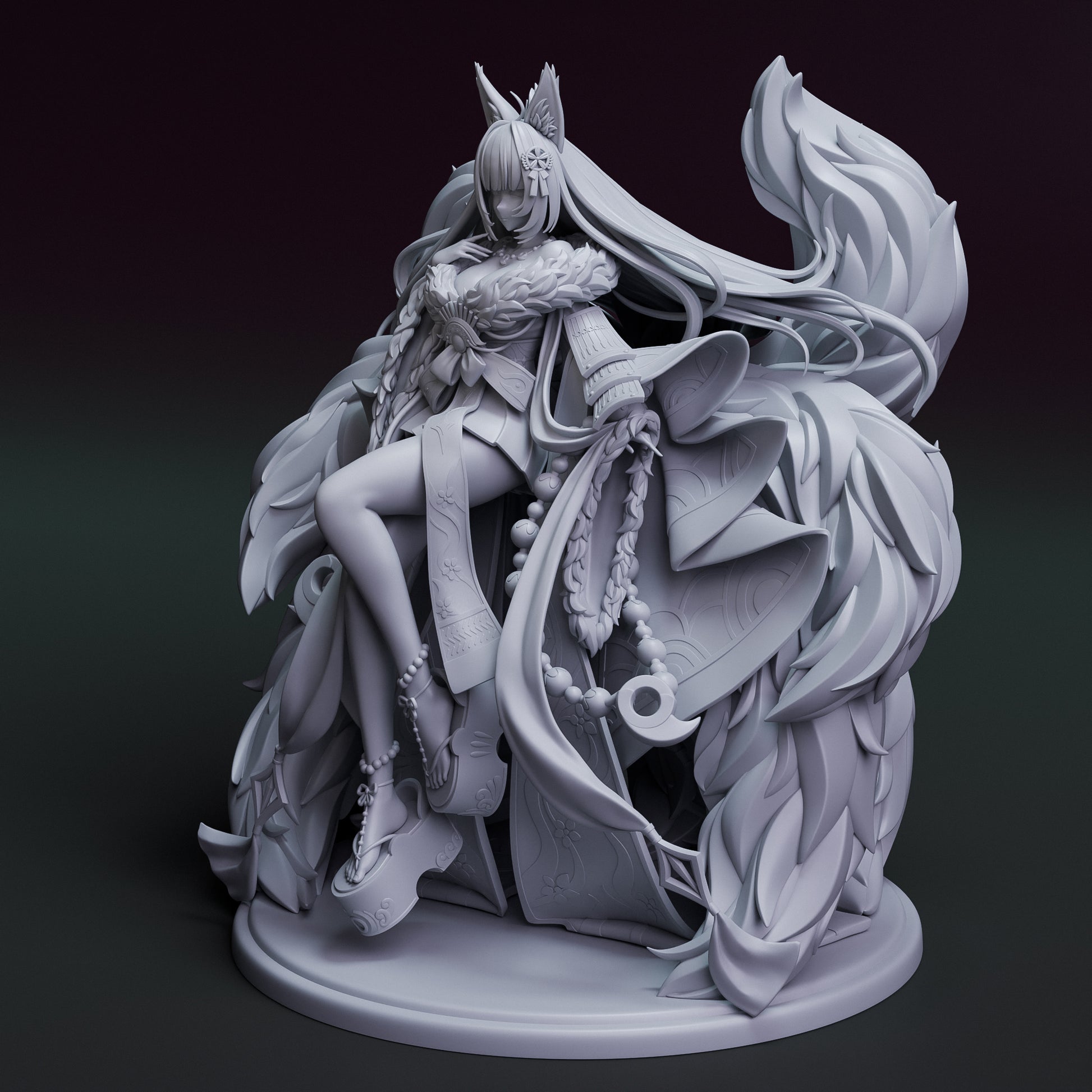 Cast in solid resin to preserve intricate garment patterns, elaborate accessories, and clean sculpting across hair, ornaments, and clothing. The themed base offers stability and complements the naval-fantasy aesthetic. Available in Black & White and Premium Hand-Painted versions.