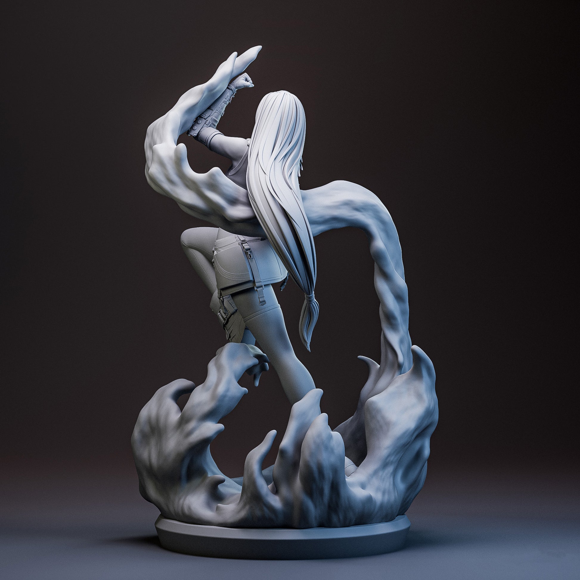 Cast in solid, high-grade resin to preserve crisp edges, fine costume folds, and facial detailing. The themed base offers stability and complements the urban–fantasy tone. Available in Black & White, and Premium Hand-Painted versions.