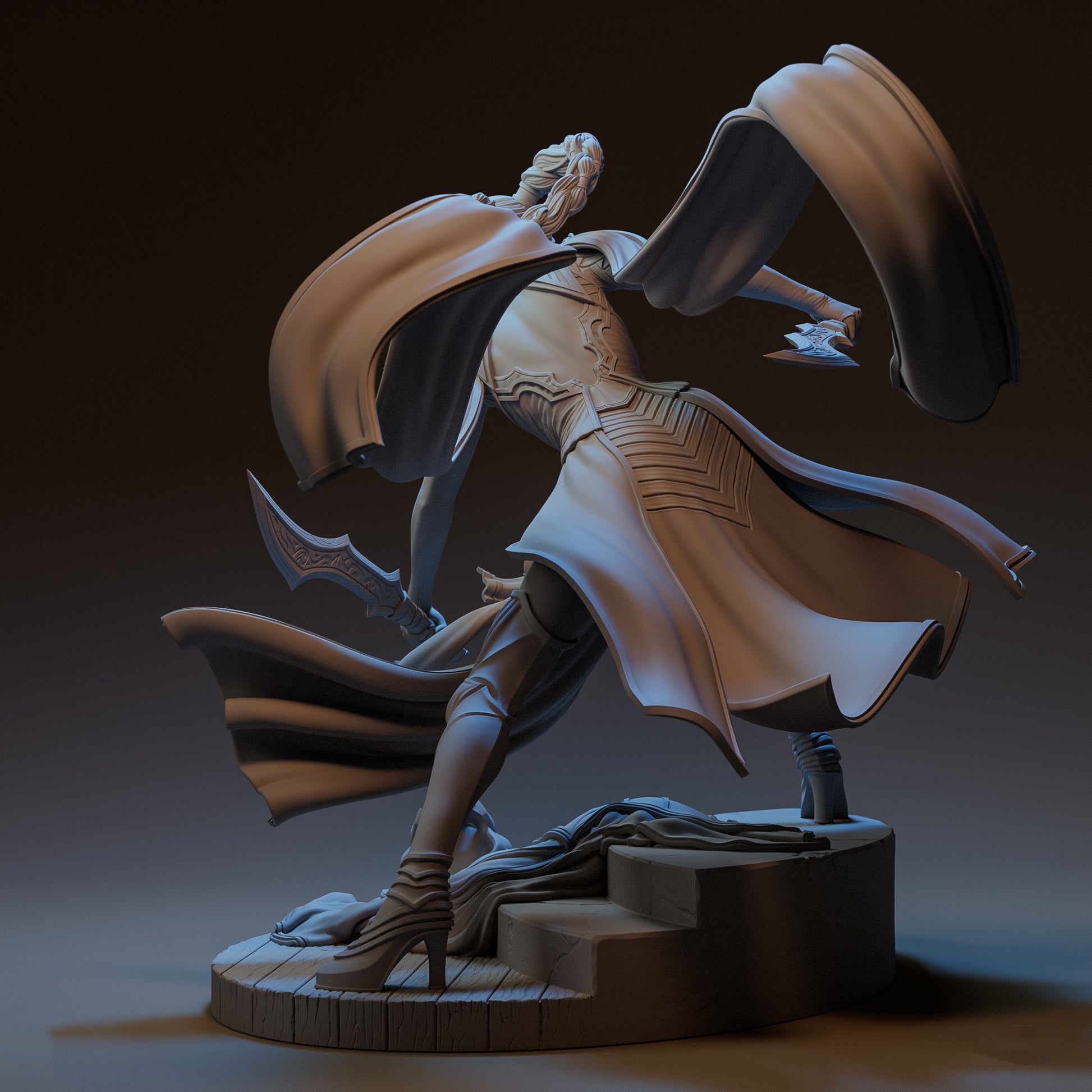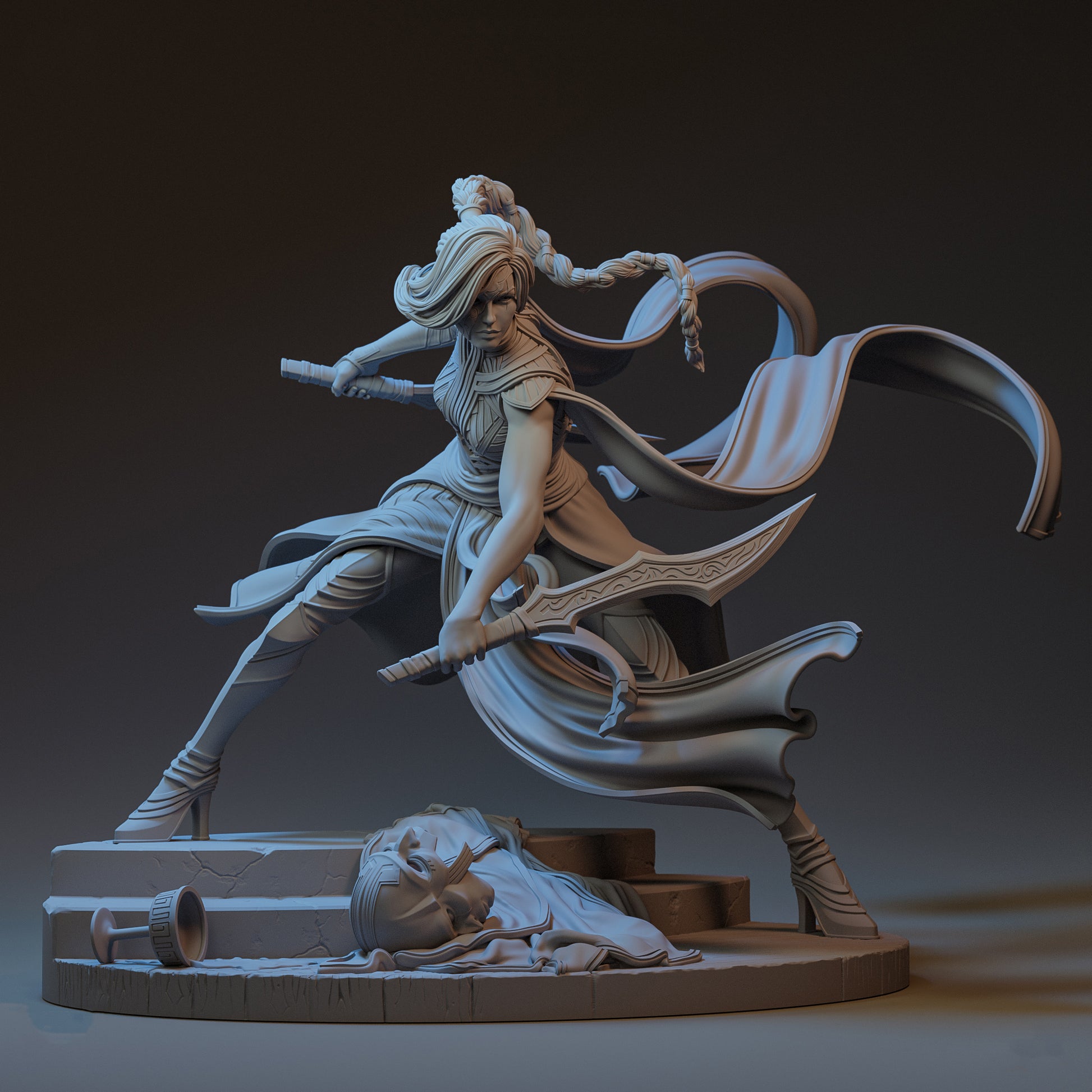 Cast in solid resin to preserve blade textures, armor detailing, and dynamic character features. The themed base provides stability while complementing the agile, assassin aesthetic. Available in Black & White and Premium Hand-Painted versions.