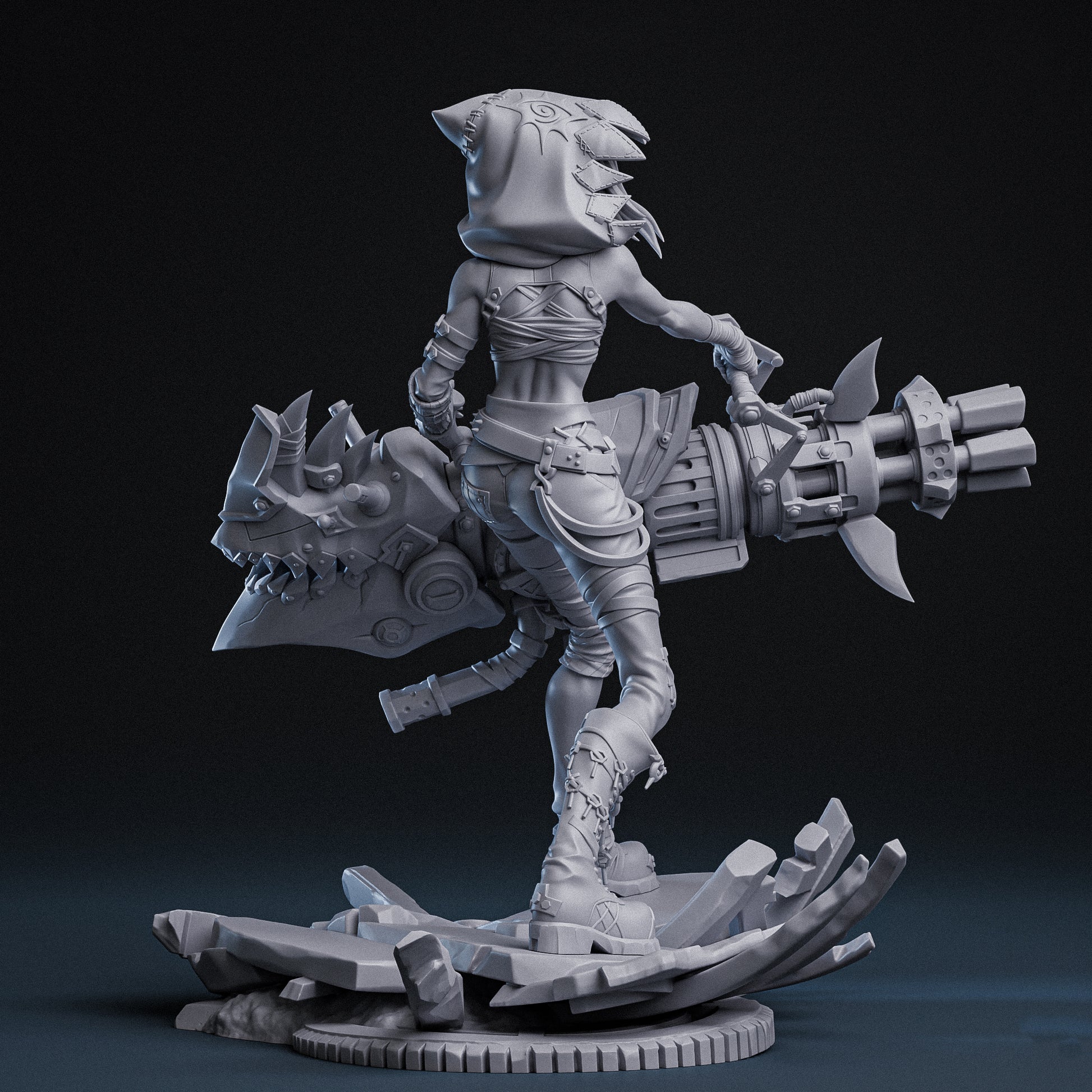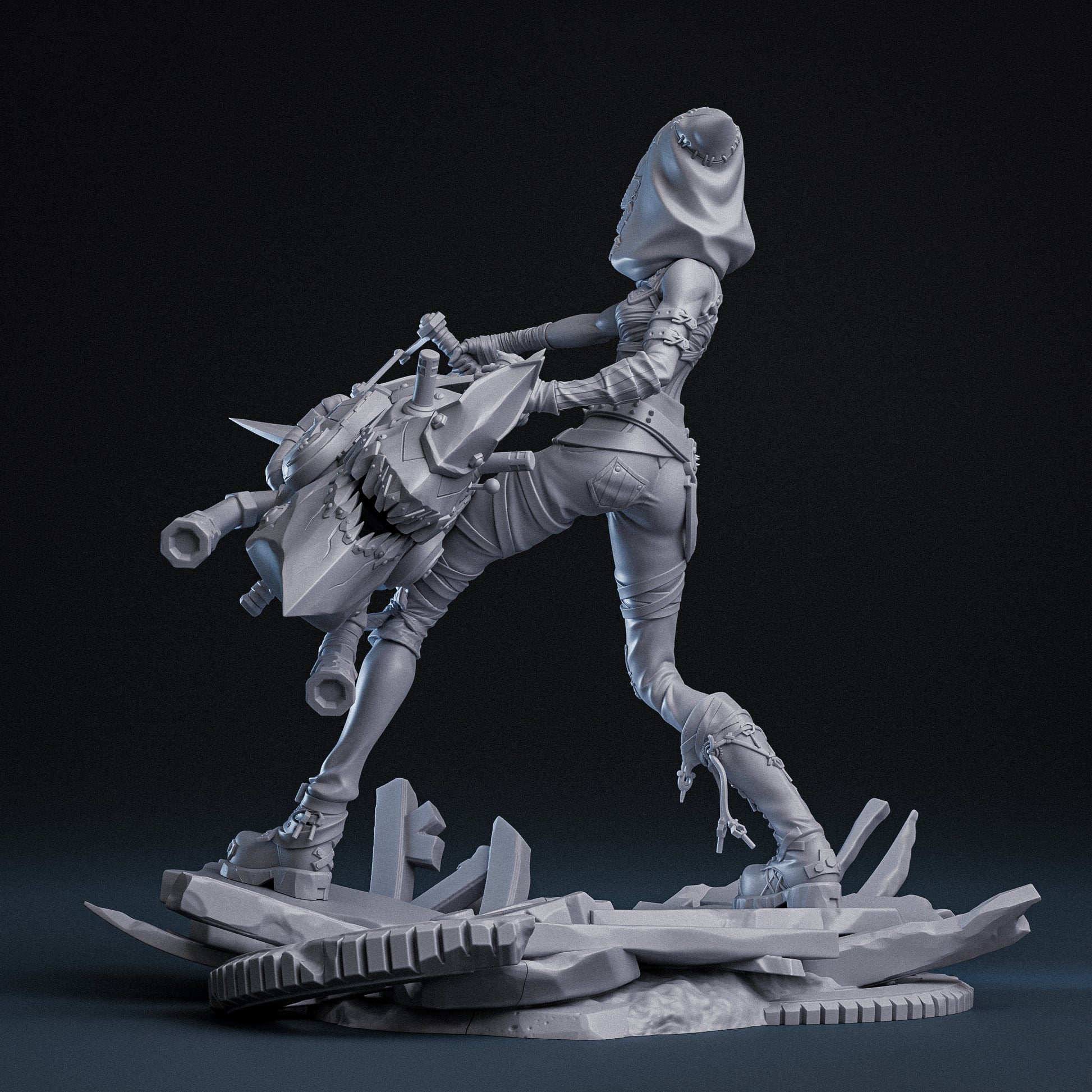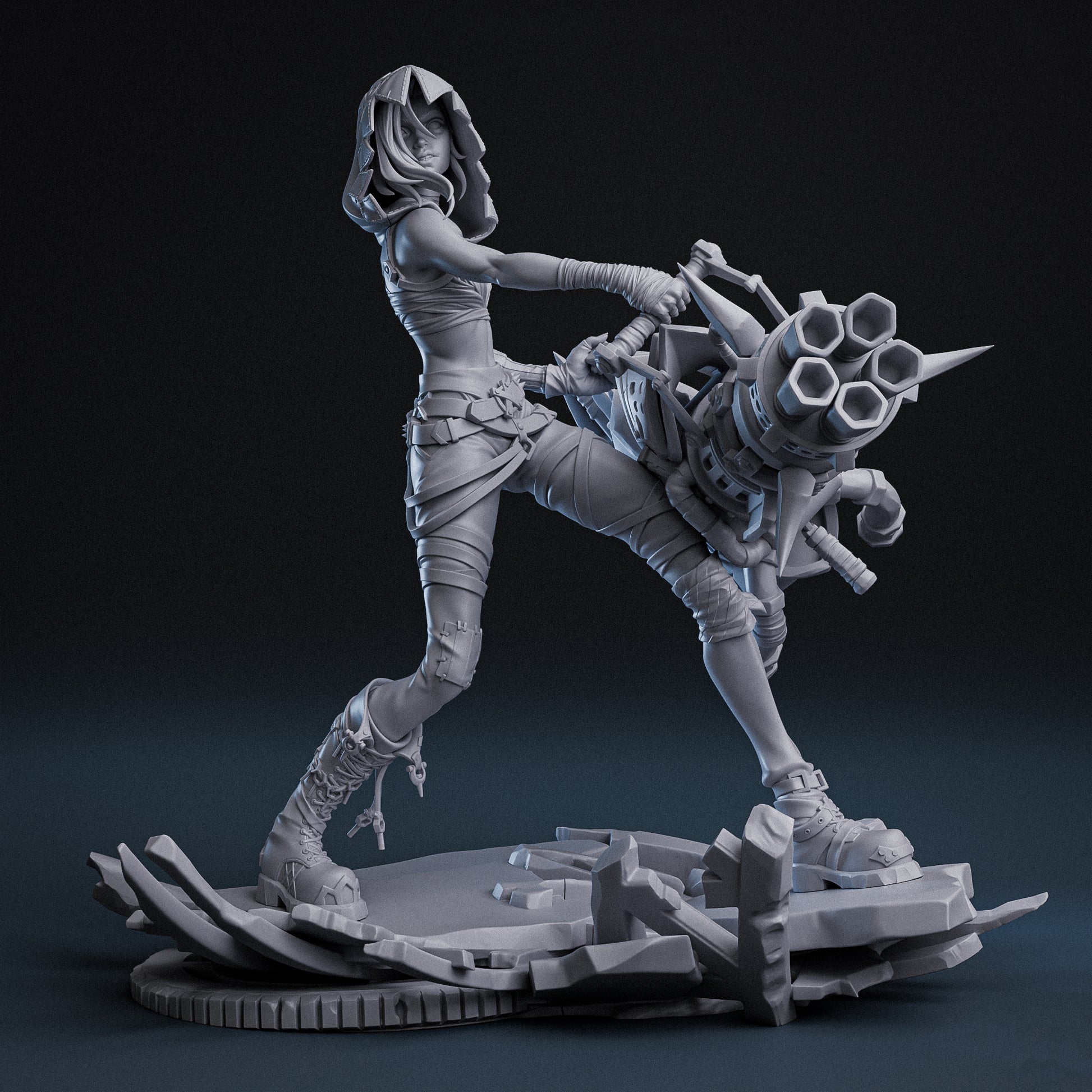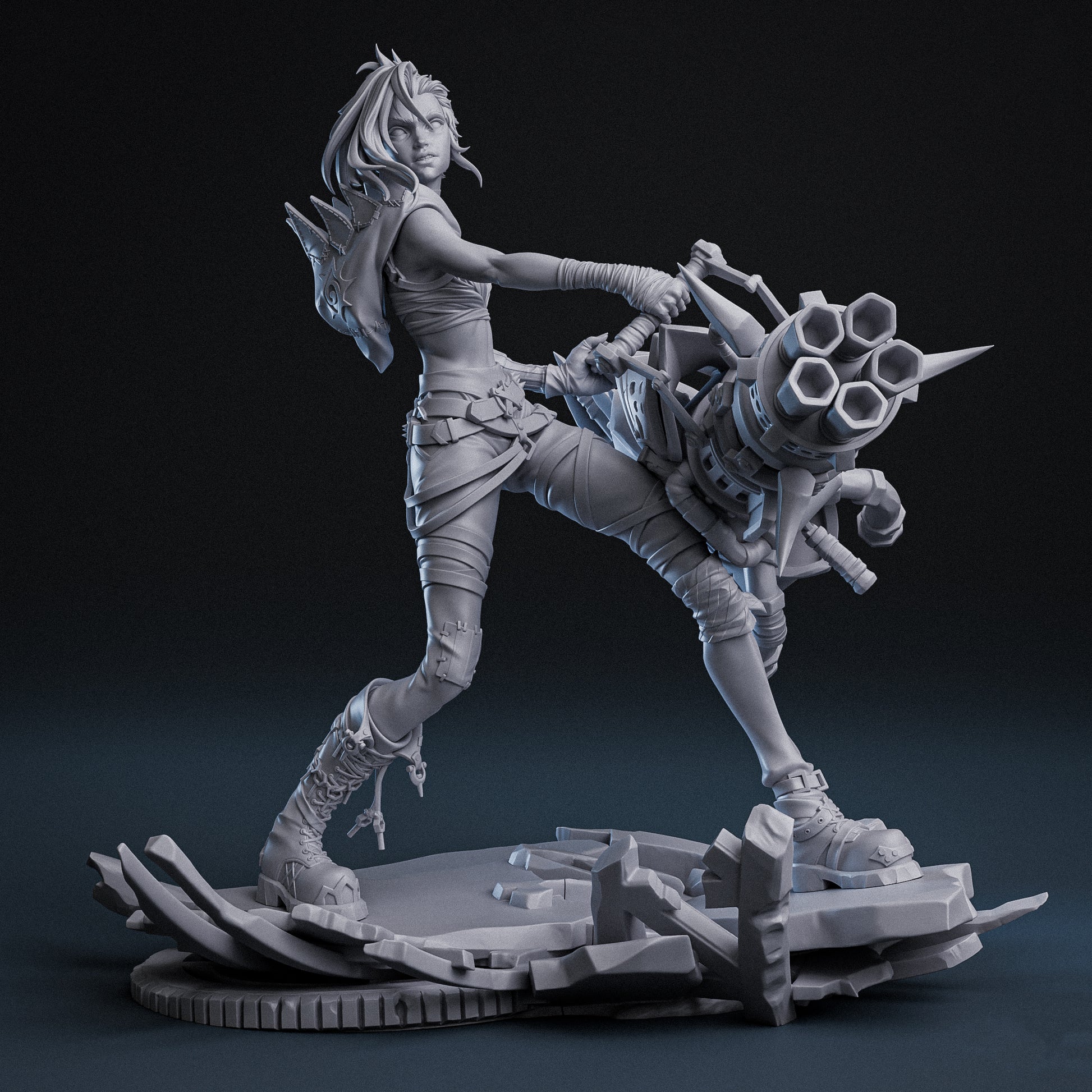 The figurine includes finely sculpted gear, layered street-punk attire, and a focused, intense expression characteristic of the character’s Season 2 evolution. Smooth resin surfaces make it ideal for display or custom paintwork that brings out gritty Zaun-inspired details.