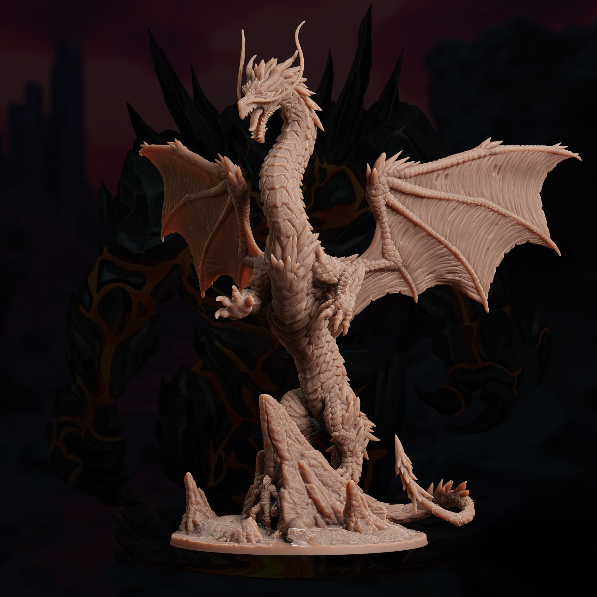 Crafted from premium resin, the miniature highlights thick, layered scales, muscular limbs, and textured rocky bases that convey majesty, dominance, and awe-inspiring presence. Whether used as a legendary dragon PC, formidable NPC, or collectible centerpiece, the Stormcrest Dragon adds narrative drama, visual spectacle, and commanding scale to any tabletop adventure.